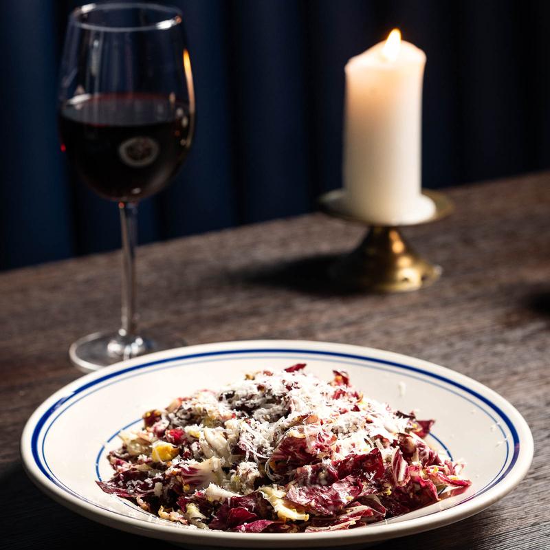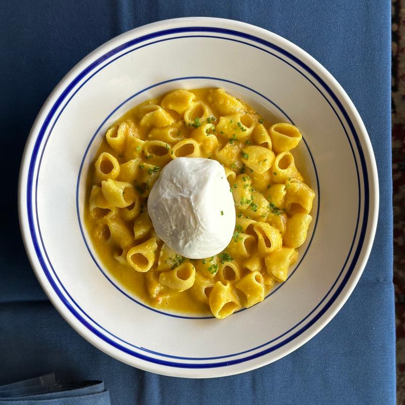our version of carbonara but creamier / guanciale / egg / shaken at the table